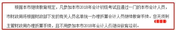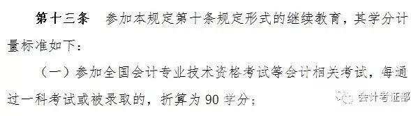政策解读:如果按照原文件来解释,就是说只要你今年通过了初级会计一科,就可以折算为90学分,也就是说今年初级考试有一科60分以上(包括一科),就可以申请免除今年的会计继续教育,可以为你省下了一笔钱。